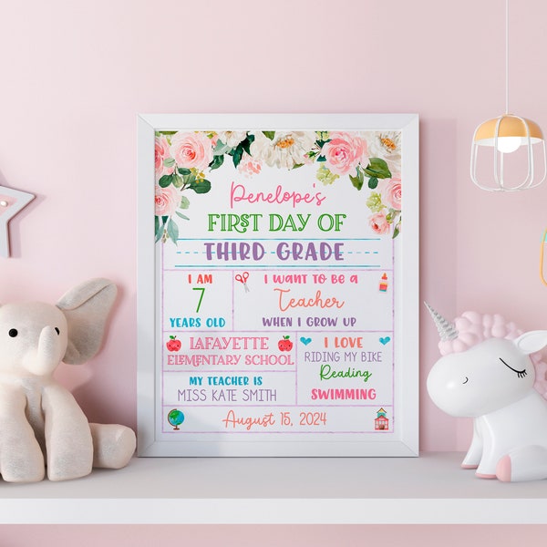 Editable First Day of School Sign Printable Modern Floral Watercolor