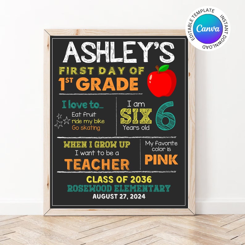 Editable First Day of School Sign Printable Chalkboard Back to School