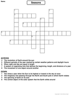 Seasons Crossword Puzzle by Bearcat Science Teachers Pay Teachers