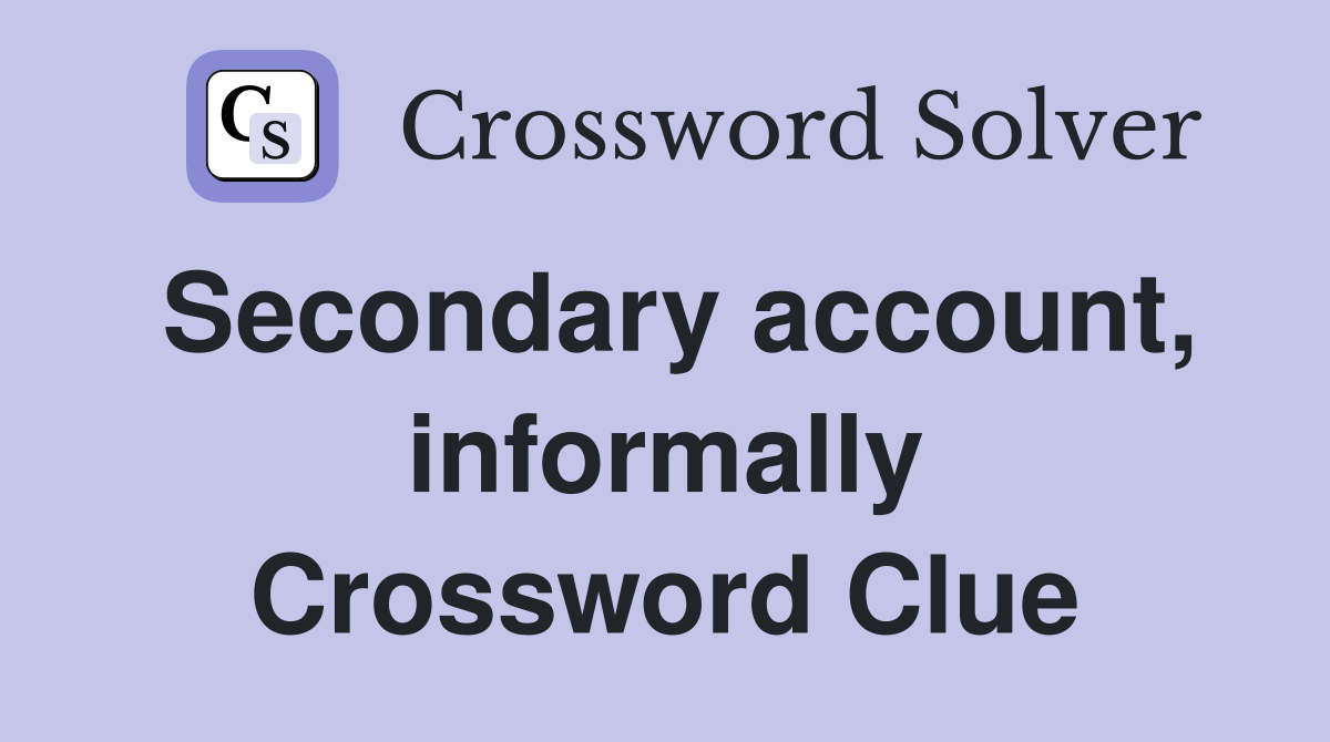 Secondary account informally Crossword Clue Answers Crossword Solver
