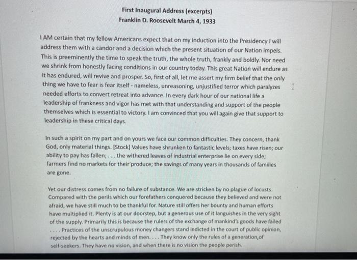 Solved First Inaugural Address (excerpts) Franklin D Chegg com
