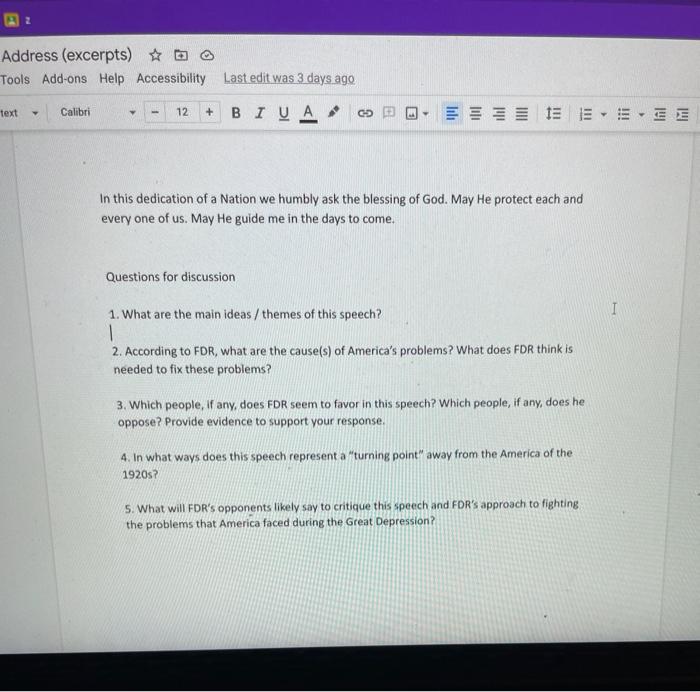 First Inaugural Address Franklin D Roosevelt 1933 Worksheet Answers