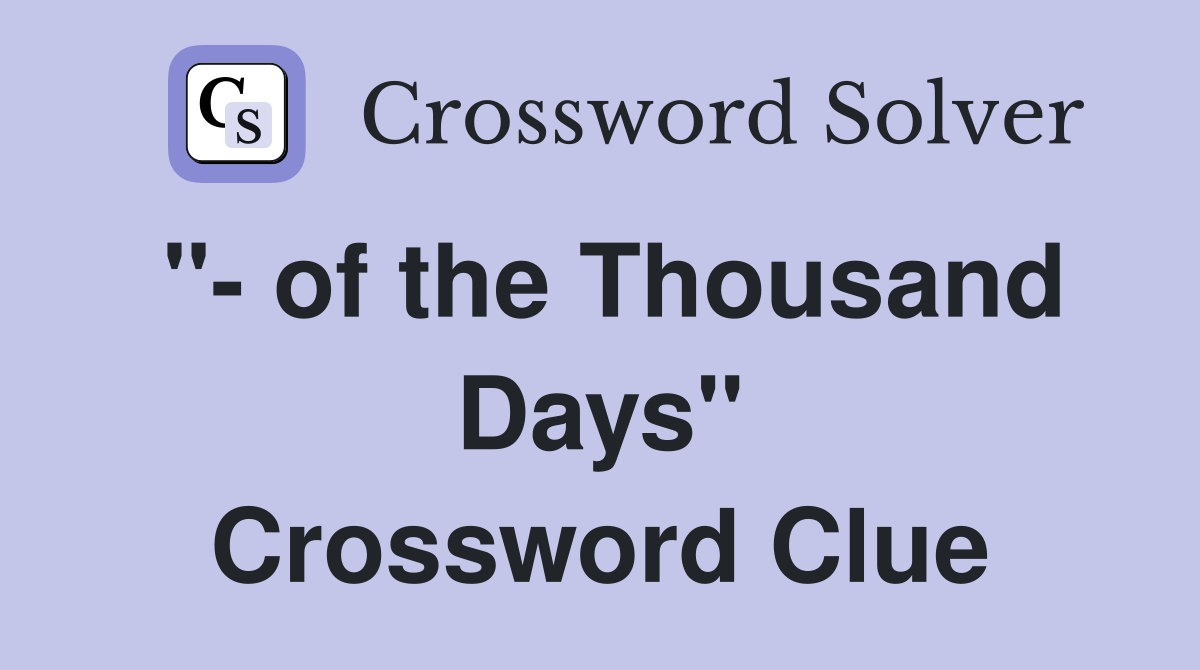quot of the Thousand Days quot Crossword Clue Answers Crossword Solver