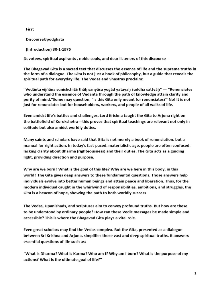 First Discourse (Bhagavad Gita) PDF Bhagavad Gita Spirituality