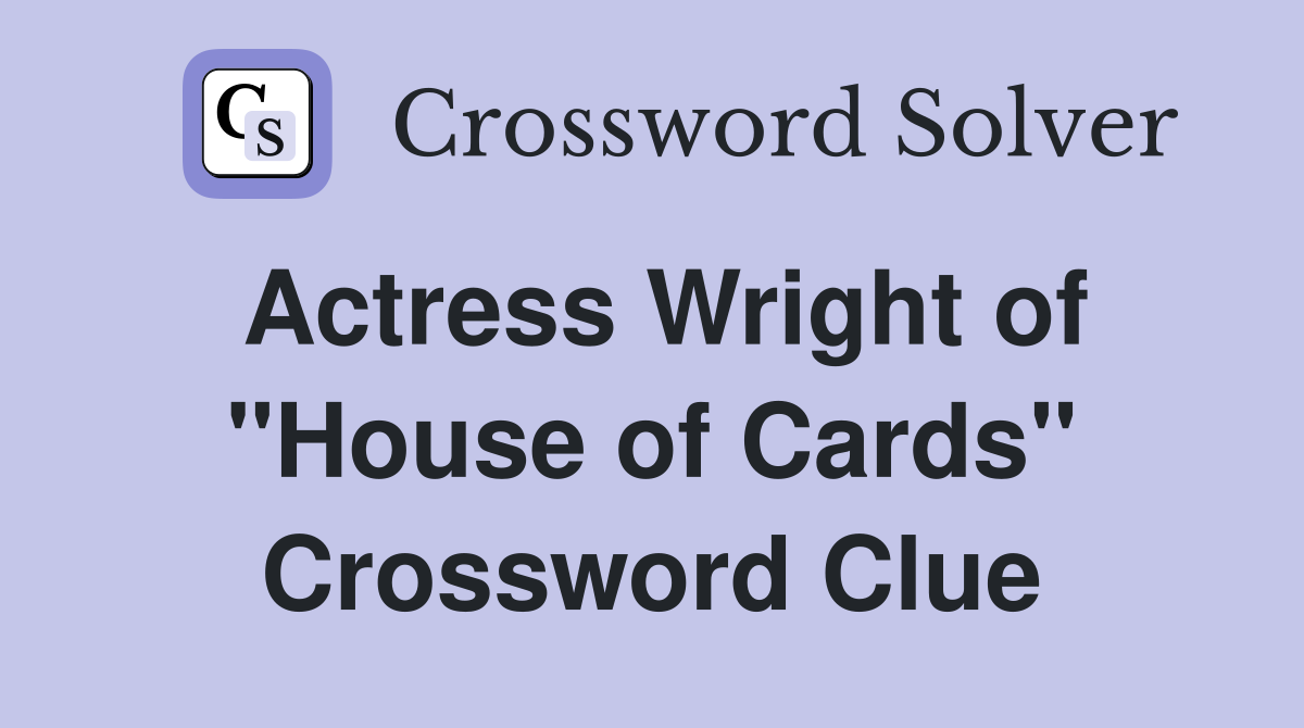 Actress Wright of quot House of Cards quot Crossword Clue Answers Crossword