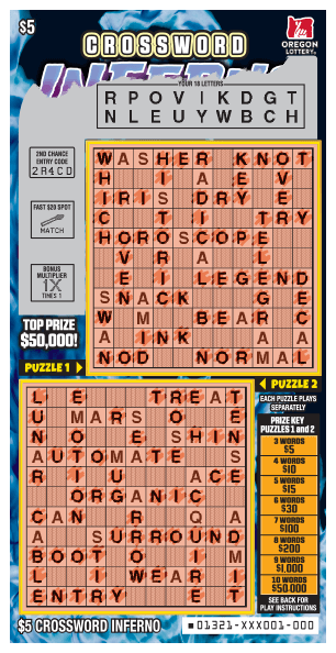 Crossword Inferno Lottery Scratch Tickets Oregon Lottery