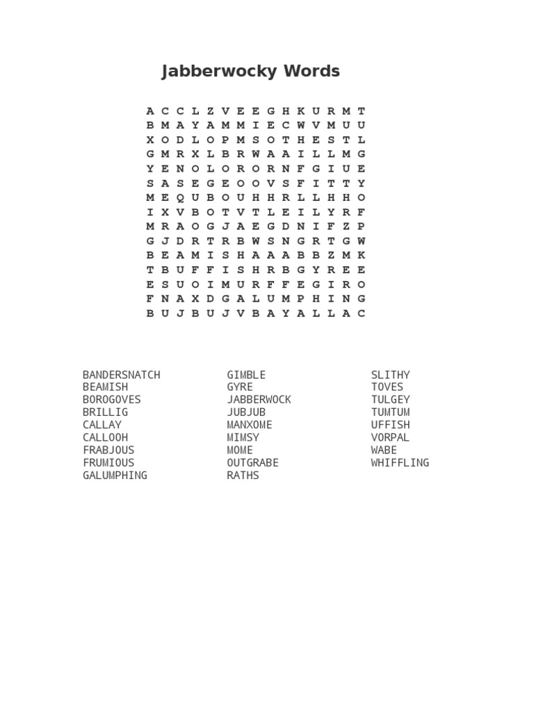 Here are some of the images for First Word Of Jabberwocky Crossword that we found in our website database.