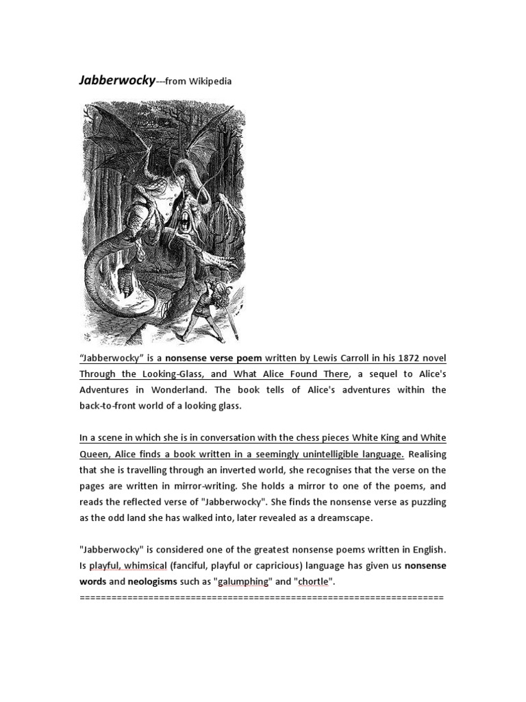 Lewis Carroll s Jabberwocky Explained PDF Lewis Carroll Works
