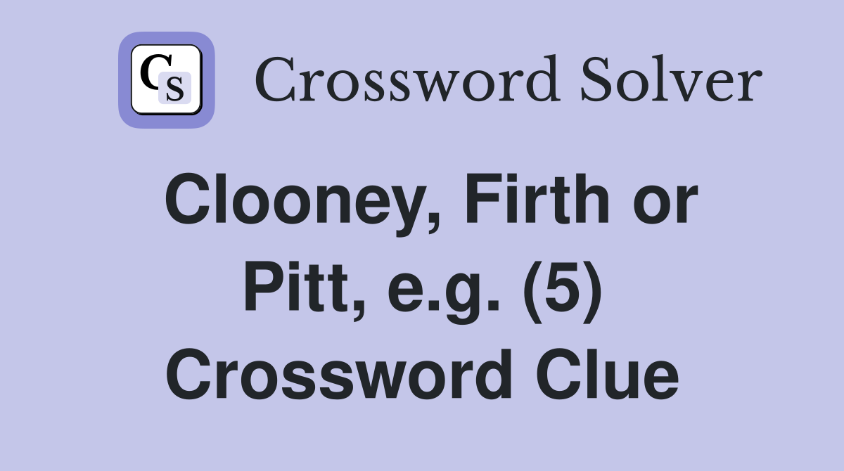 Clooney Firth or Pitt e g (5) Crossword Clue Answers Crossword
