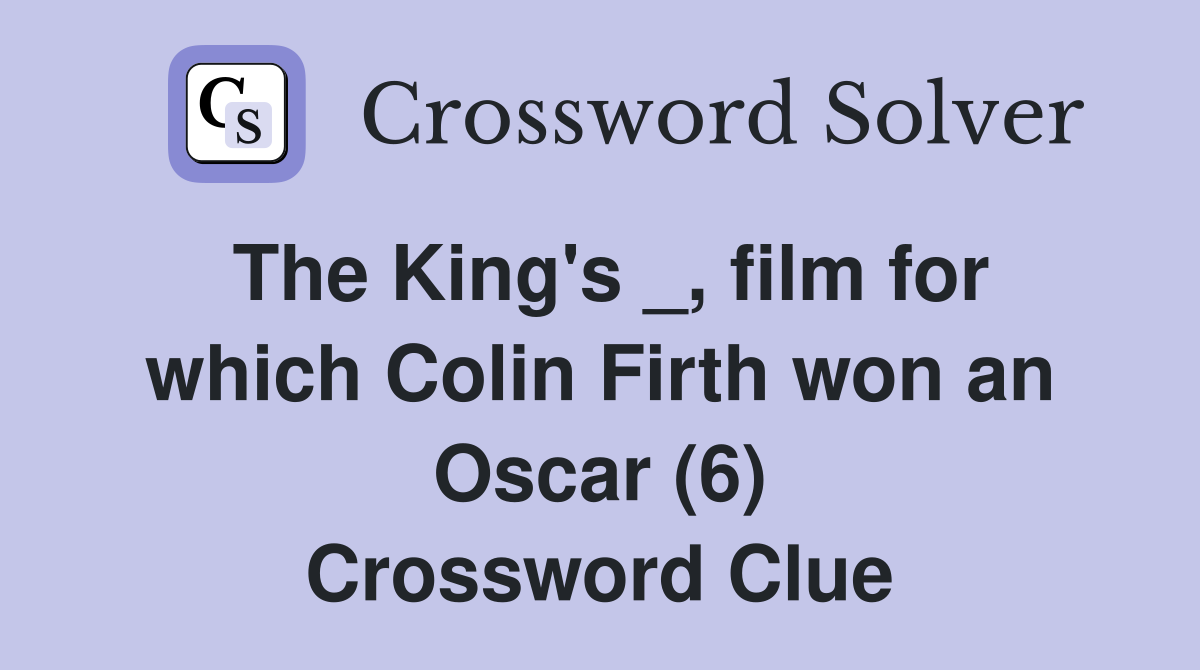 The King s film for which Colin Firth won an Oscar (6) Crossword