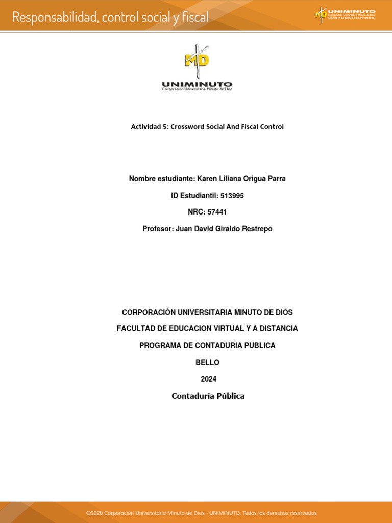 Actividad 5 Crossword Social and Fiscal Control PDF