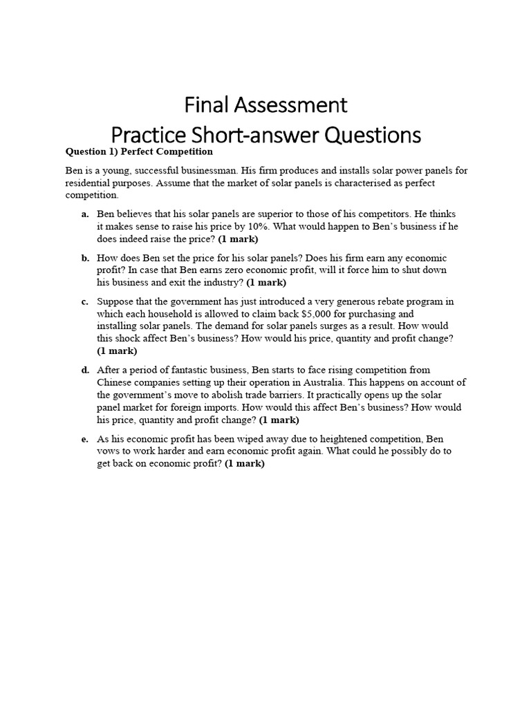 Practice Short Answer Questions Questions Only 1 PDF