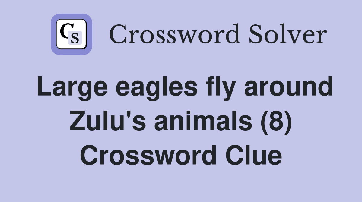 Large eagles fly around Zulu #39 s animals (8) Crossword Clue Answers