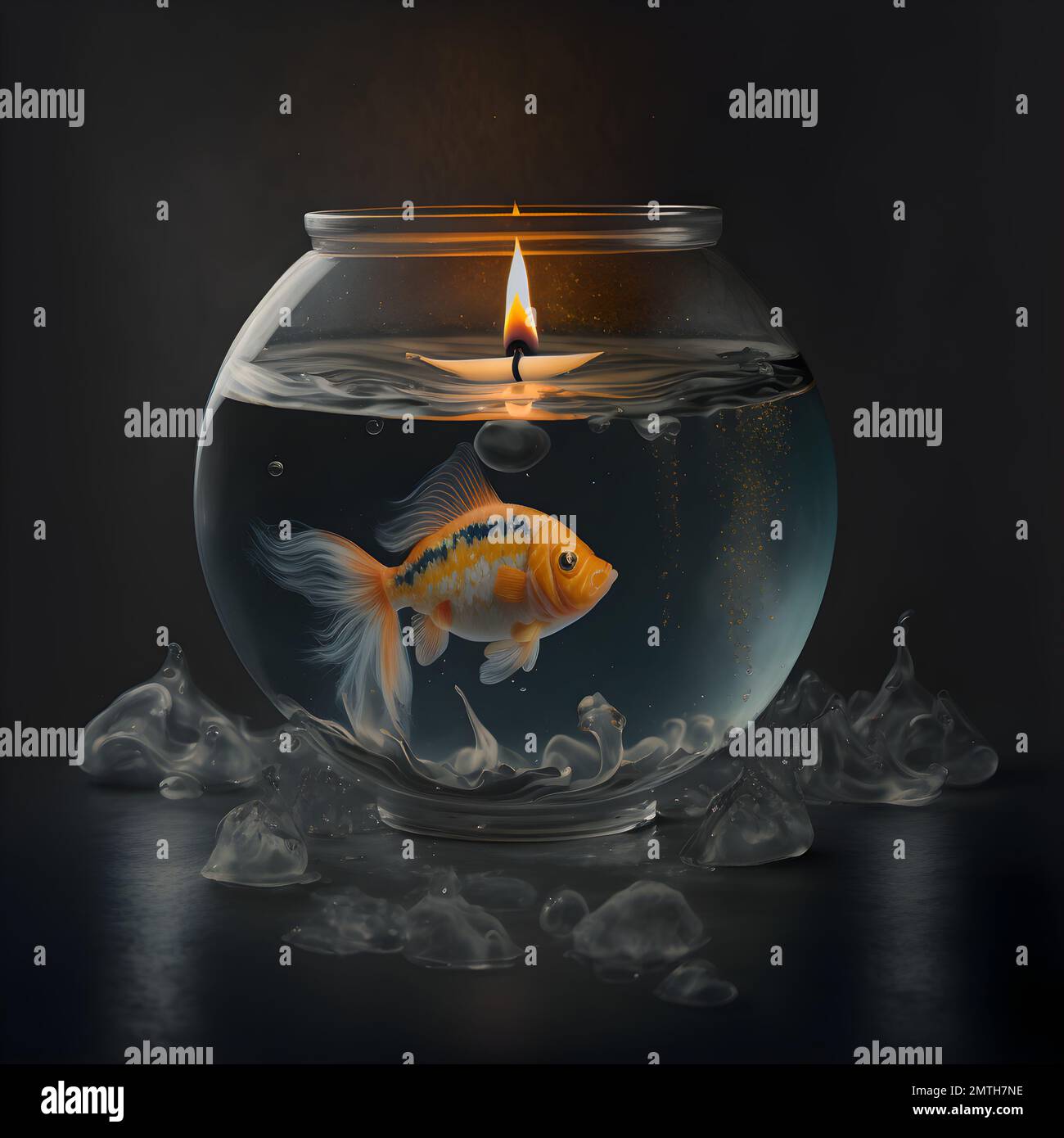 Fantasy Fish in a Fishbowl with Flowers Stock Illustration