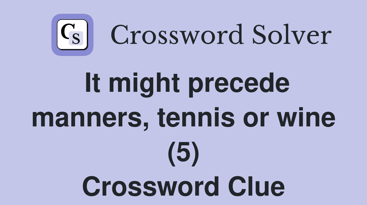 It might precede manners tennis or wine (5) Crossword Clue Answers