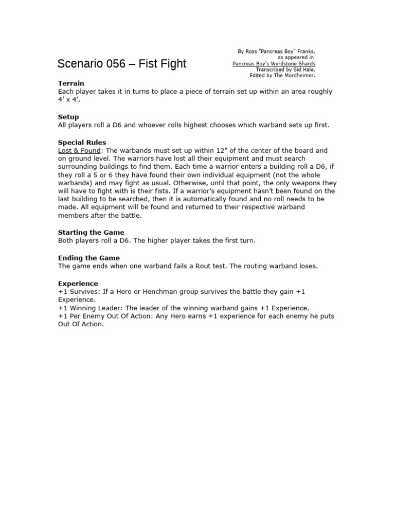 Mordheim Fist Fight Scenario Guide PDF