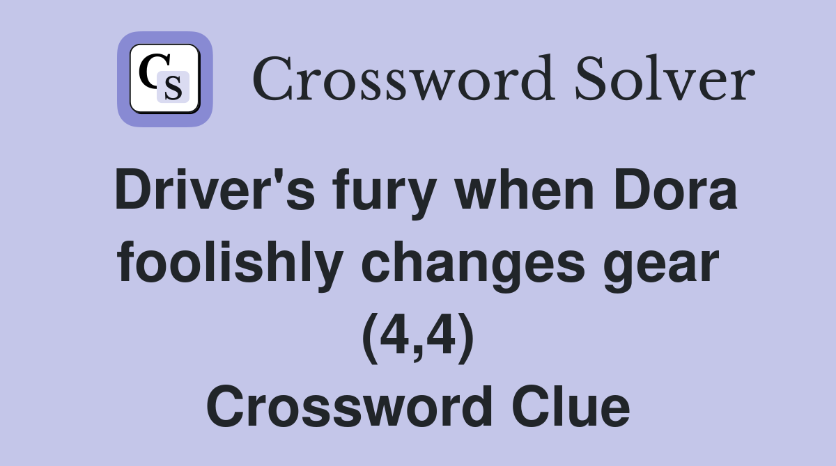 Driver s fury when Dora foolishly changes gear (4 4) Crossword Clue