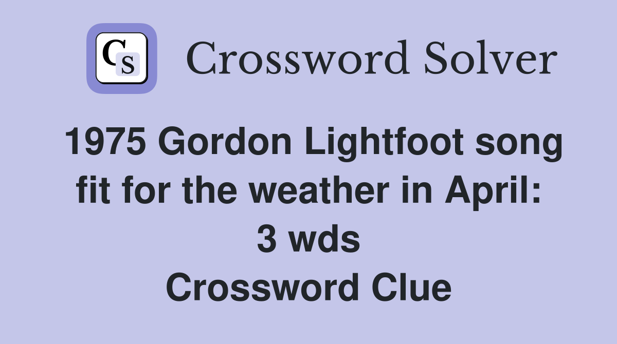 1975 Gordon Lightfoot song fit for the weather in April: 3 wds