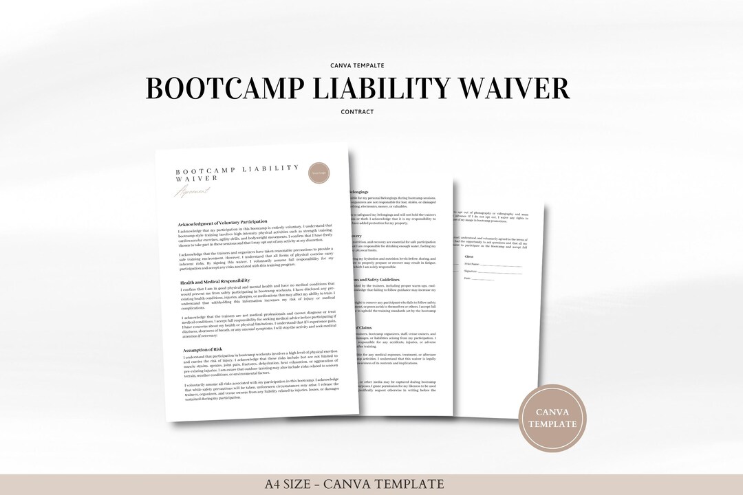 Bootcamp Liability Waiver Canva Template Editable Consent Form Digital