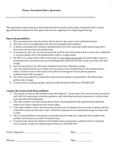 Fitness Agreement Template