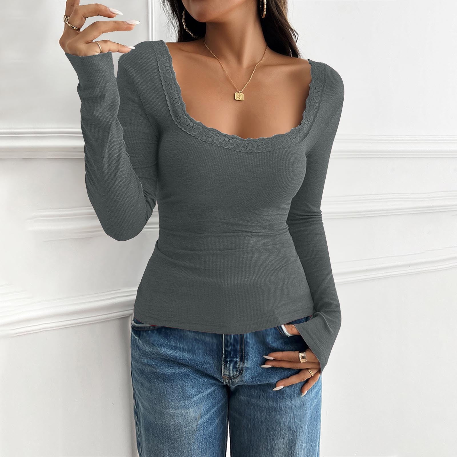 BLCHUNen Long Sleeve Shirts for Women Trendy Lace Pullover Slim Fitted