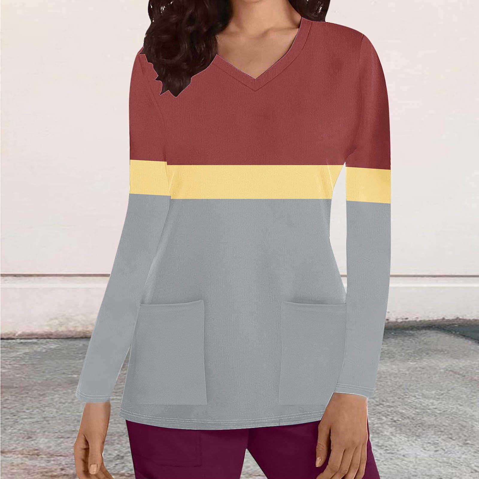 Blmnix Color Block Women Shirts Casual Pockets Fitted Tees for Women