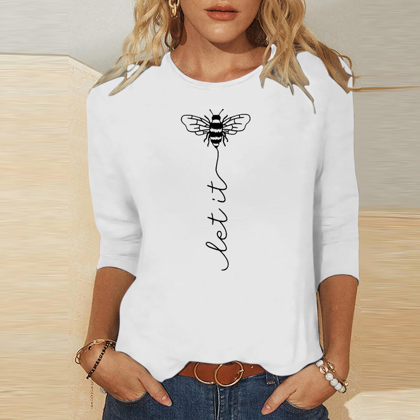 Blmnix Print Fitted Tees for Women Bee Festival White Womens Plus Size
