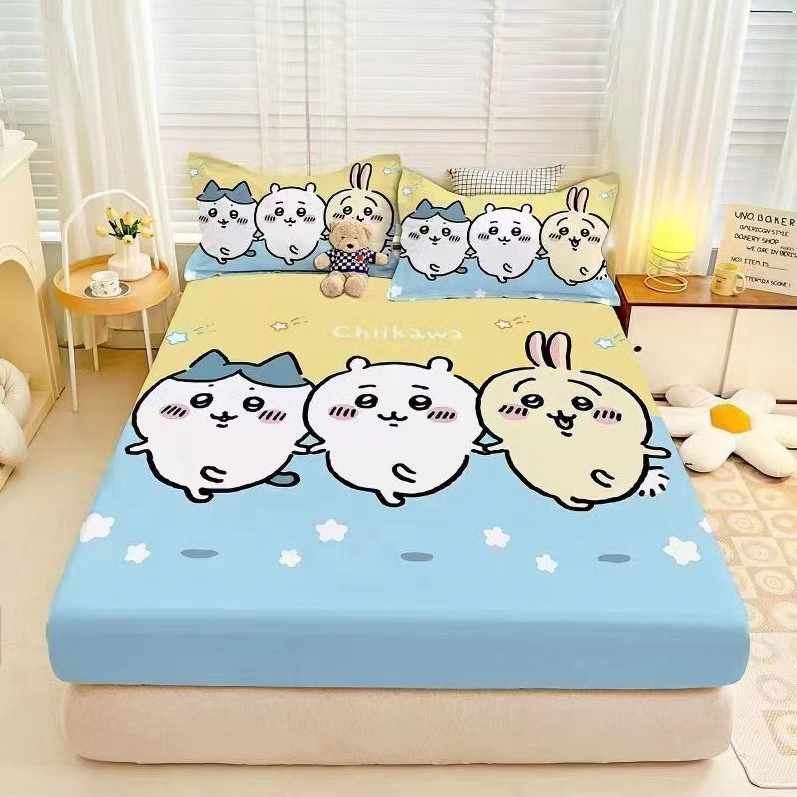 Cartoon Hangyodon Kawa Fitted Bed Sheet Three Piece Set (Fitted sheet