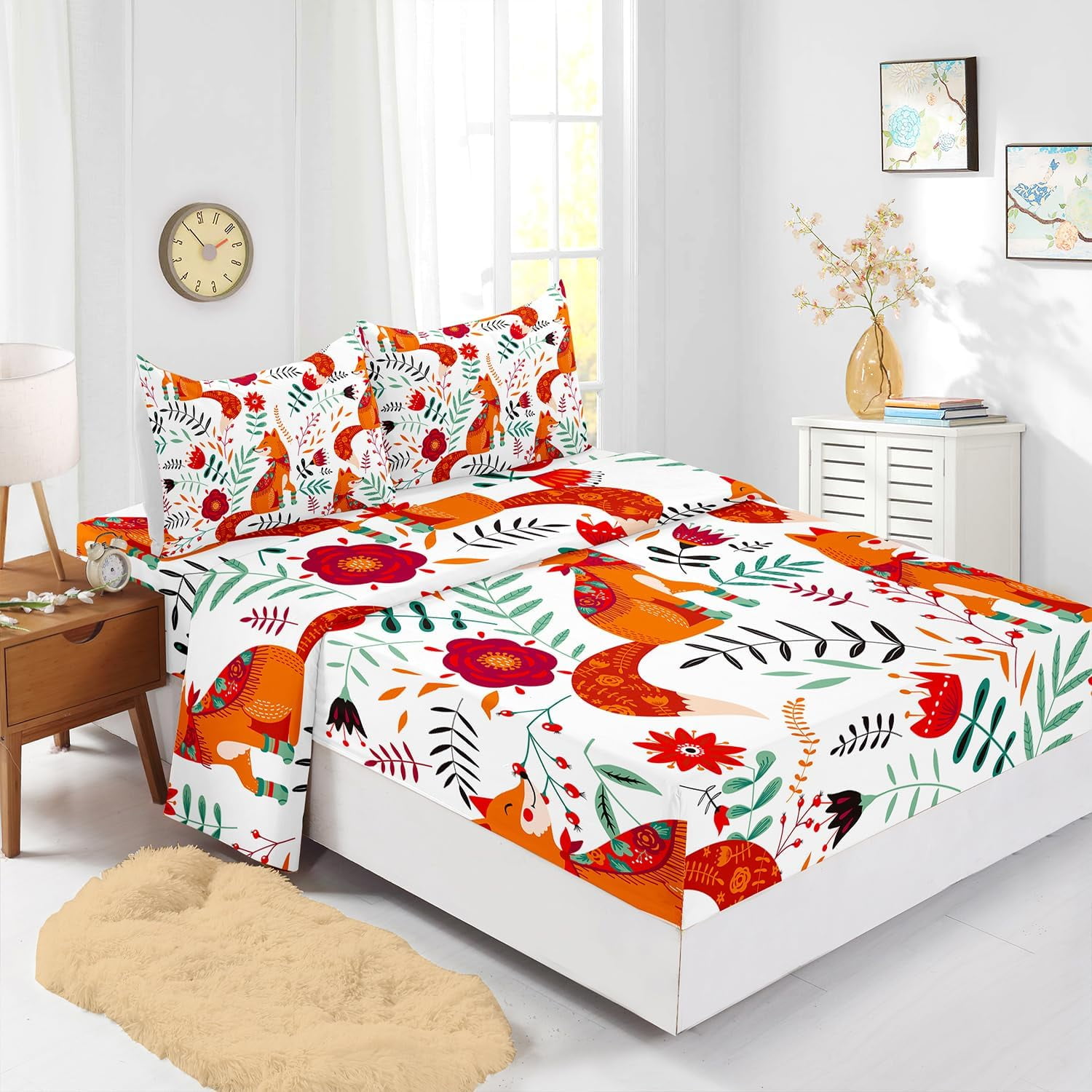 Cute Fox Pattern Twin Fitted Sheet Deep Pockets Cartoon Fox Kid Bed