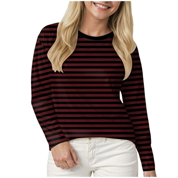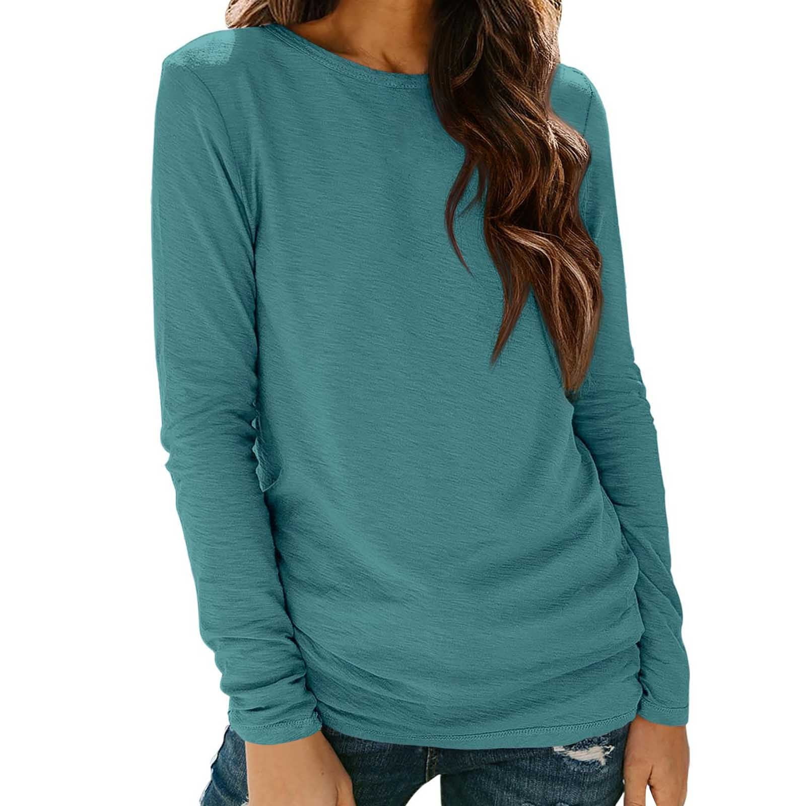 Aueoeo Slim Fitted Shirts For Womens Long Sleeve Crew Neck Going Out