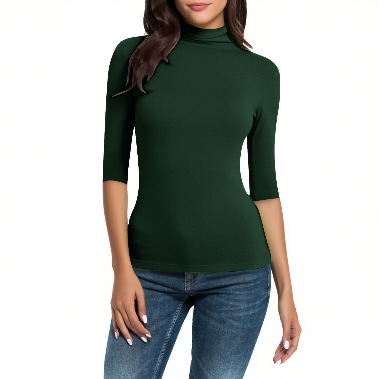 cocolona Womens Solid Color Turtleneck Half Sleeve Shirts Fashion
