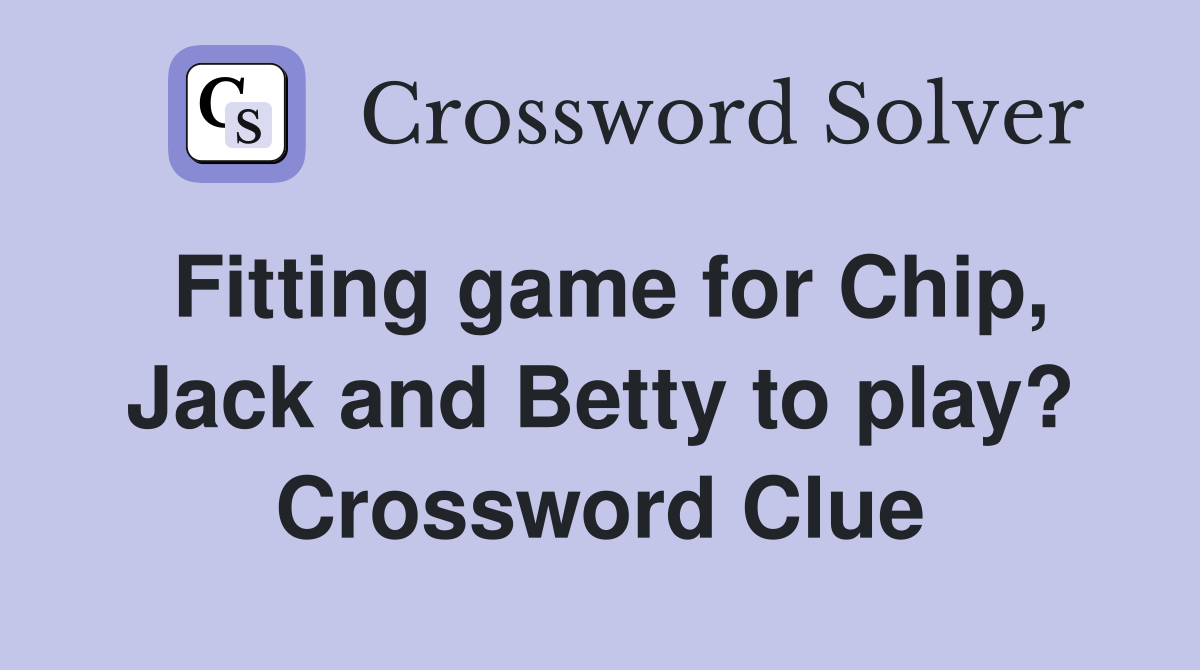 Fitting game for Chip Jack and Betty to play? Crossword Clue Answers