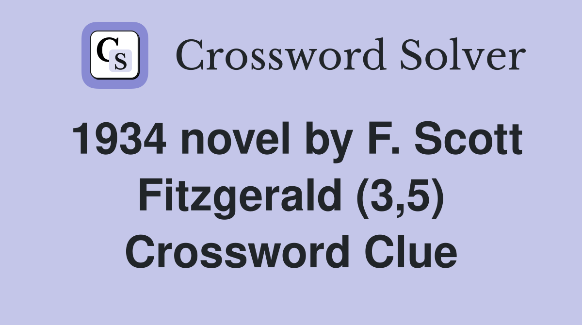 1934 novel by F Scott Fitzgerald (3 5) Crossword Clue Answers