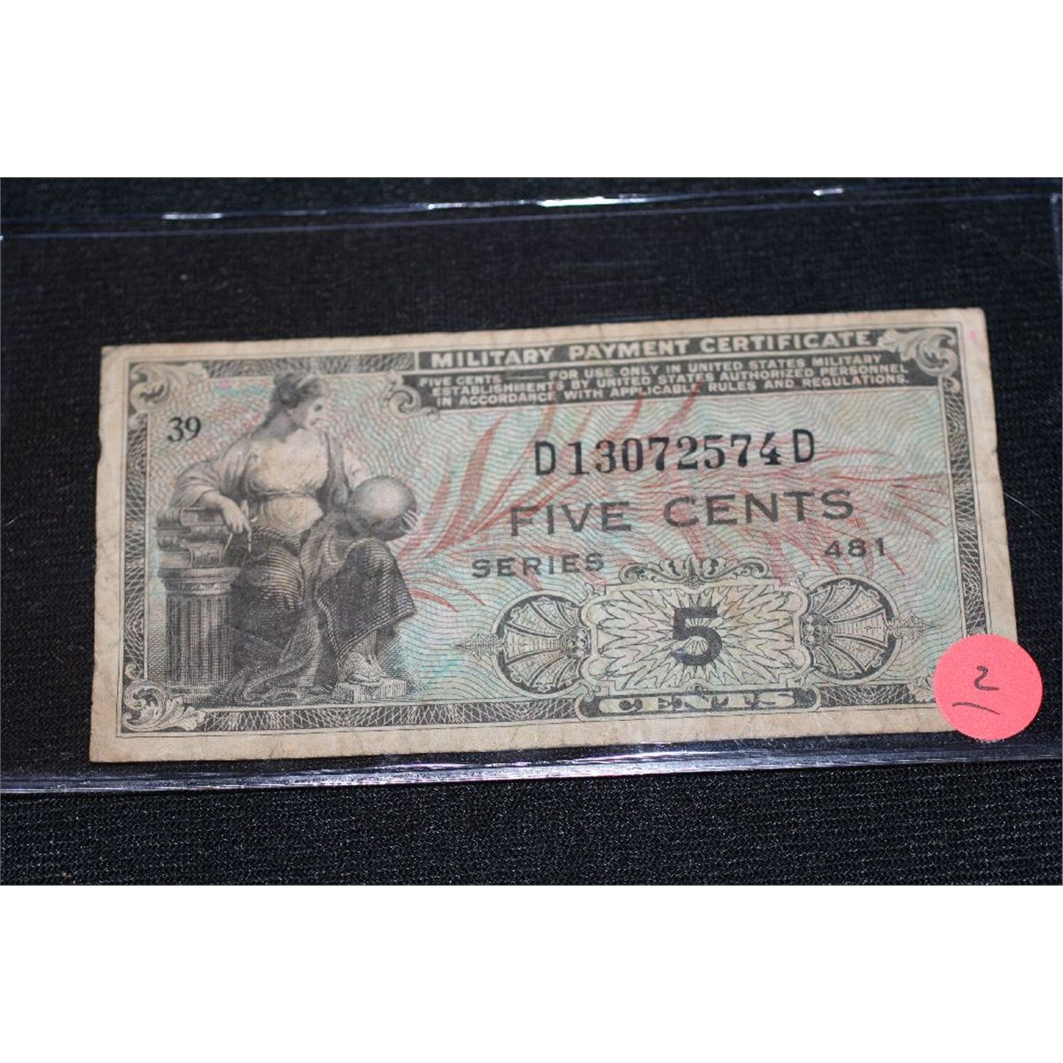 *US 5 Cent Military Payment Certificate Series 481 Property Room