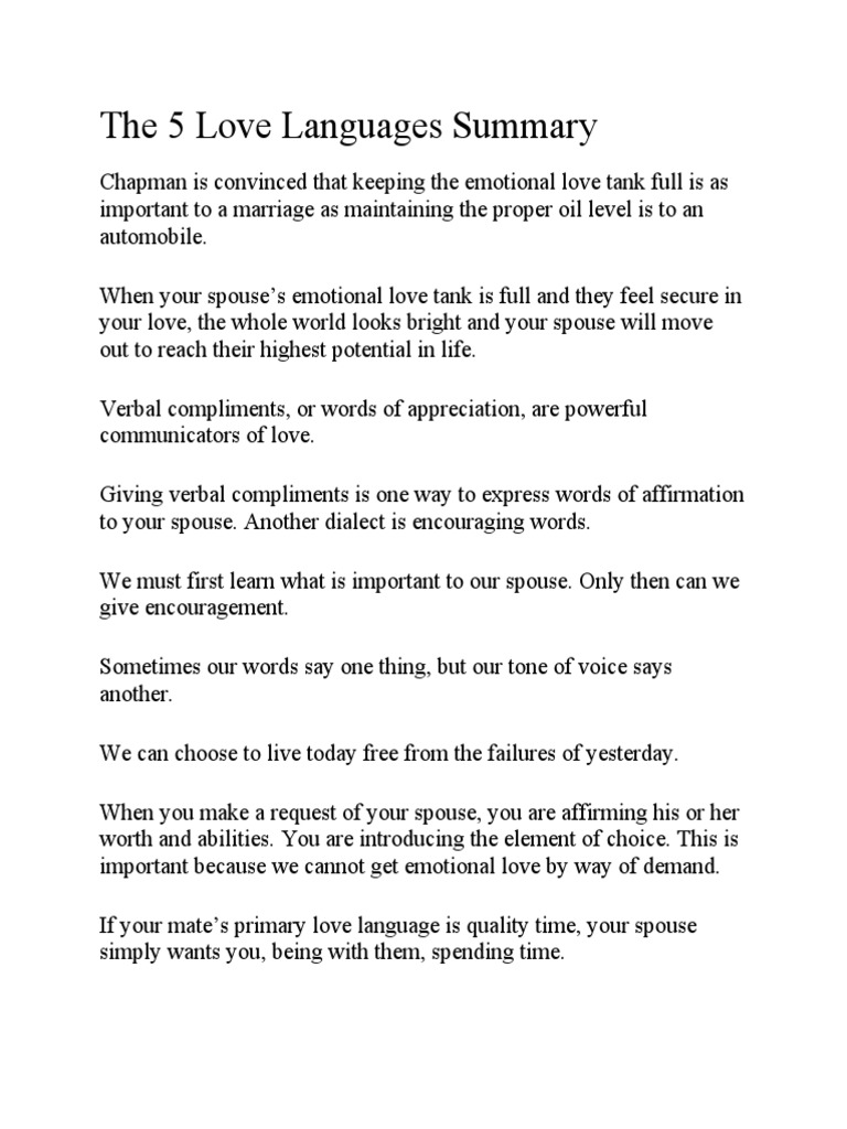 Here are some of the images for Five Love Languages Summary Printable that we found in our website database.