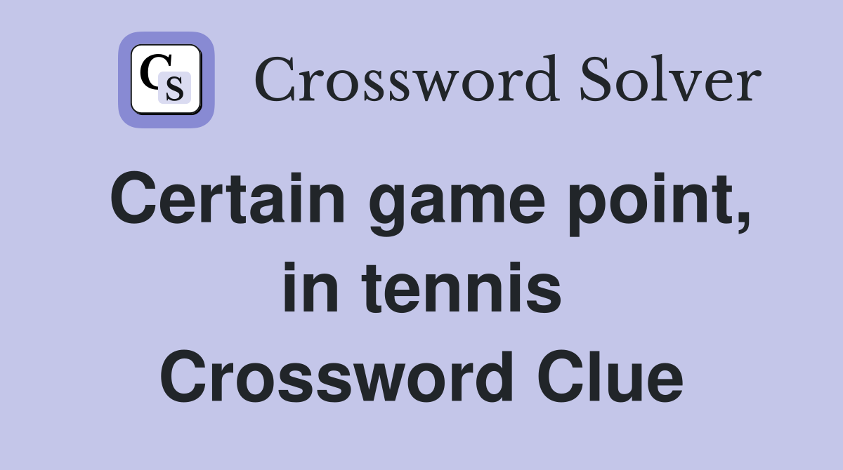 Certain game point in tennis Crossword Clue Answers Crossword Solver