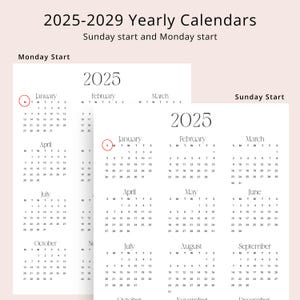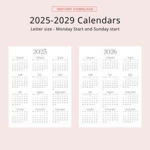 2025 2029 5 Years Calendar 2025 to 2029 Wall Calendar PRINTABLE PDF