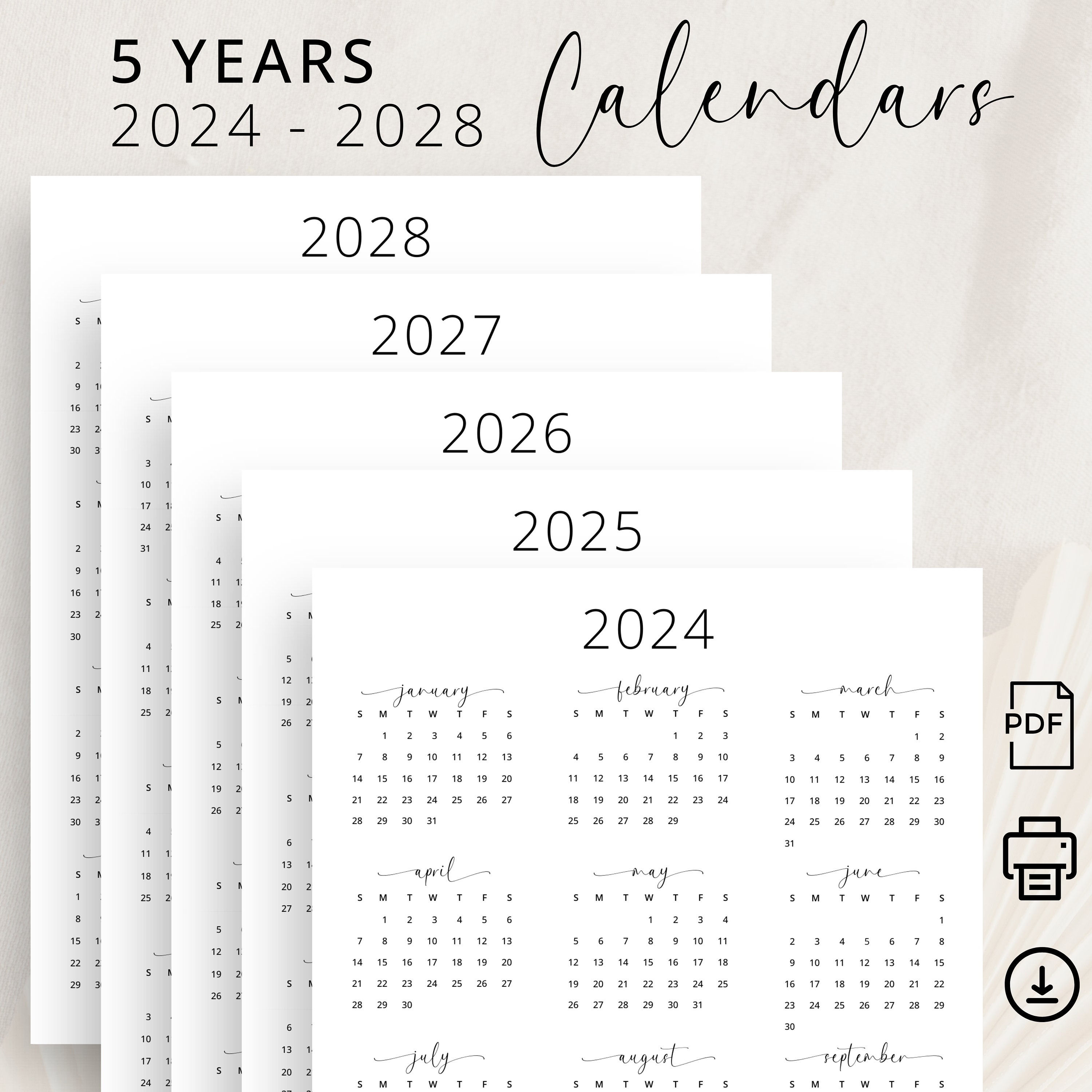 Printable 2024 2028 5 Year Calendar 2024 Printable Calendar 2025