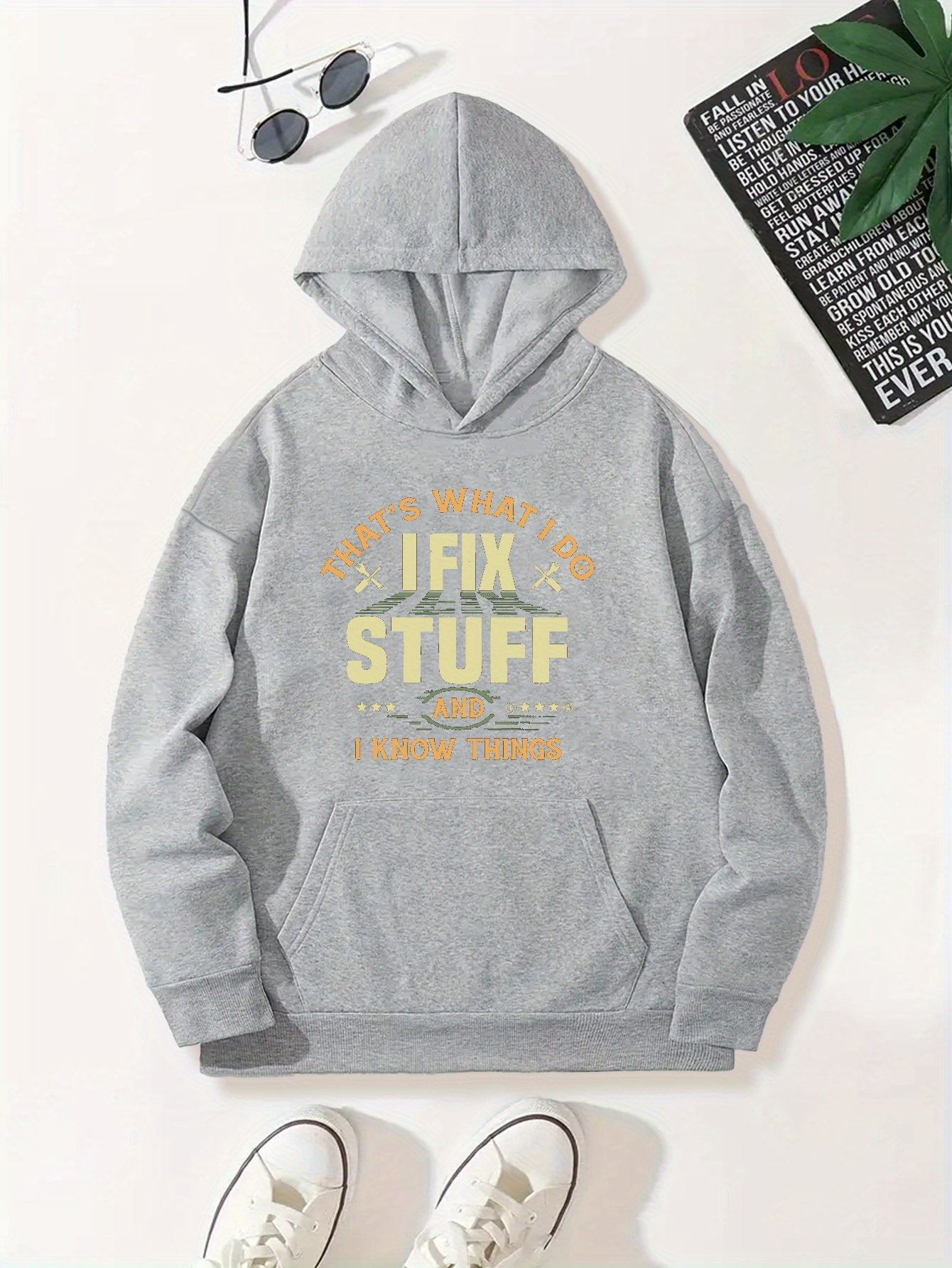 Men #39 s Fix Stuff Letter Print Hoodie Casual Loose Long Sleeve Temu