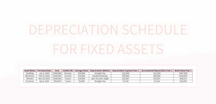 Fixed Assets Depreciation Schedule Excel Template And Google Sheets