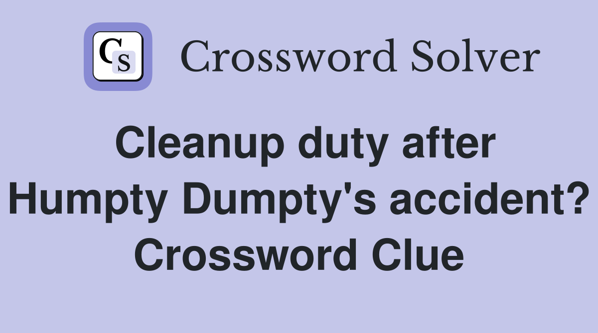 Cleanup duty after Humpty Dumpty #39 s accident? Crossword Clue Answers