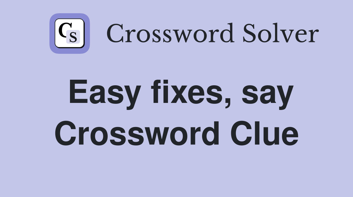 Easy fixes say Crossword Clue Answers Crossword Solver