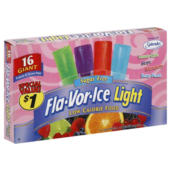 Fla Vor Ice Light Giant Assorted Flavors Sugar Free Freeze Serve Pops