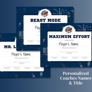Football Award Certificates Awards Team Awards Personalized