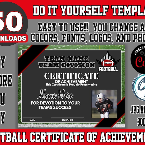 Editable Football Award Certificates CANVA Template Printable