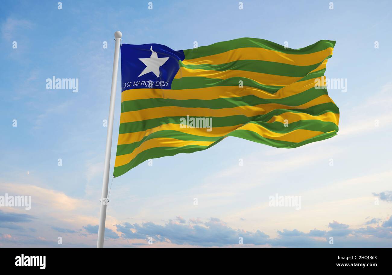 flag of Piaui Brazil at cloudy sky background on sunset panoramic