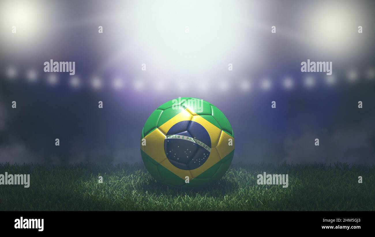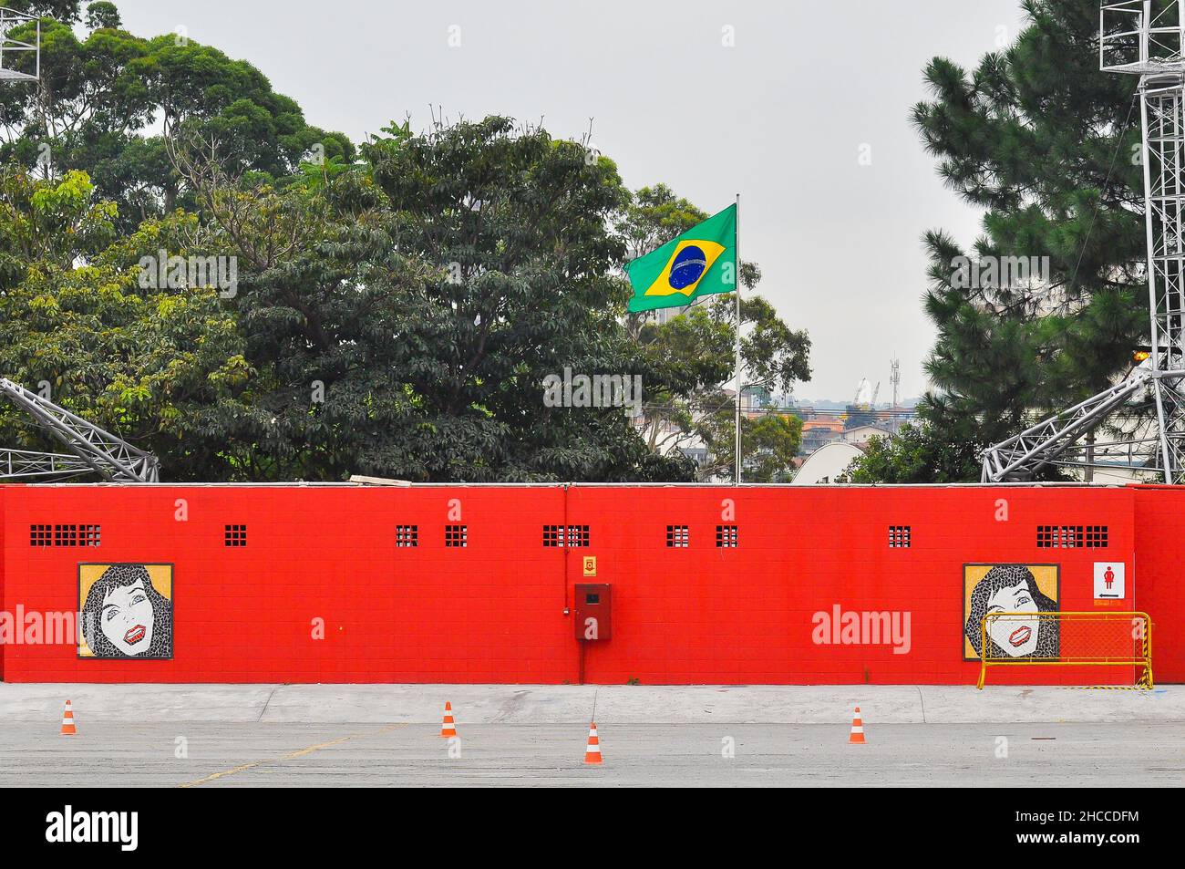 Beautiful view of the Brazilian flag and green trees in Sao Paulo Stock