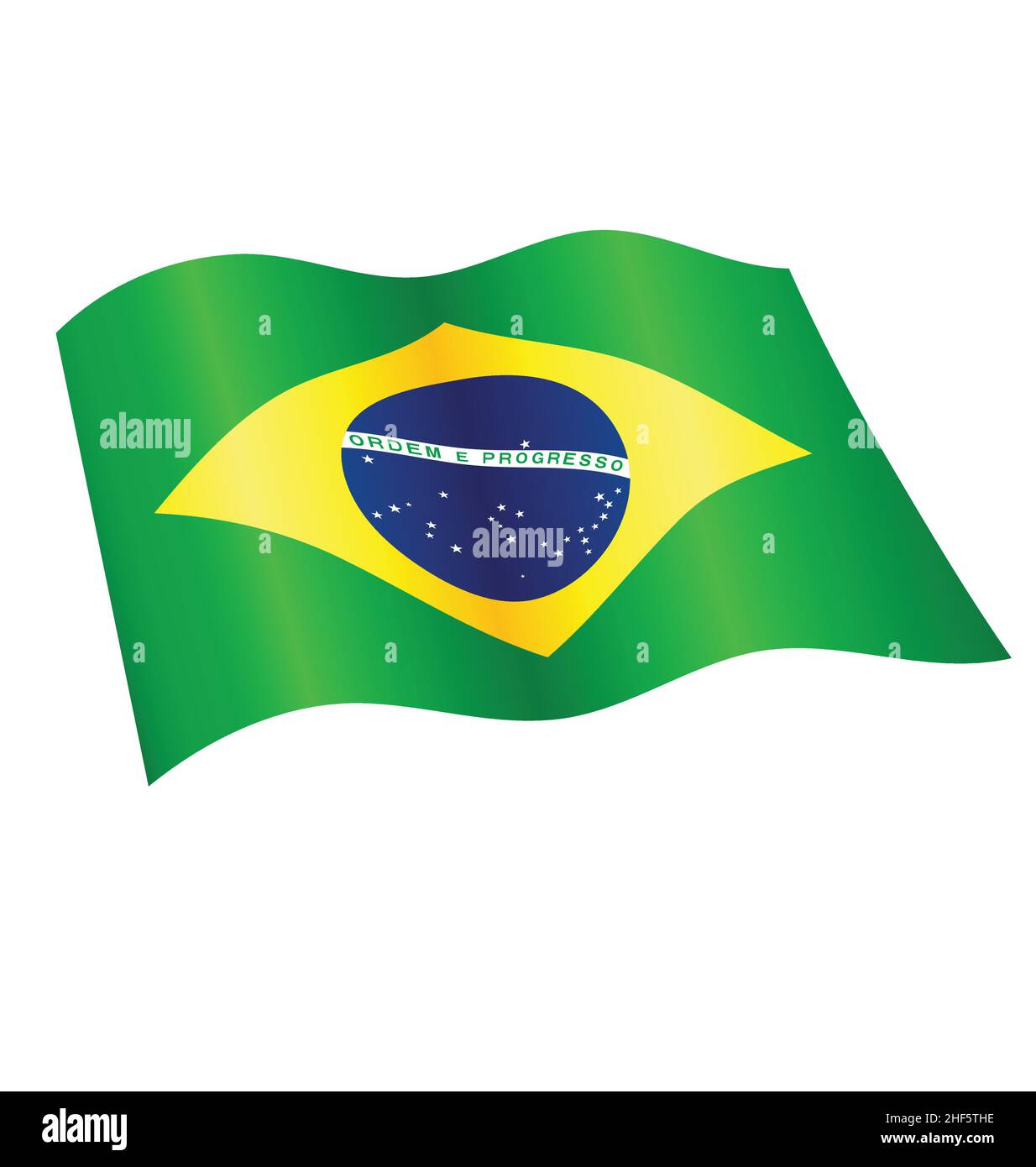 Flying waving Brazilian flag of Brazil brasil silk icon vector isolated