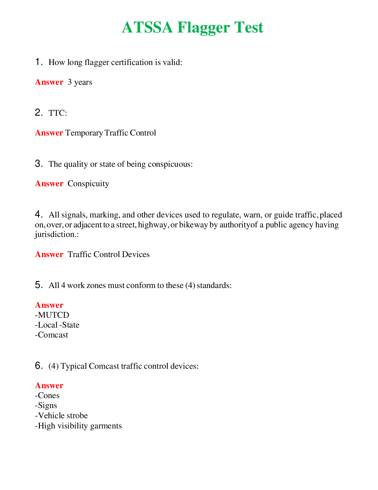 Flagger Certification Test Answers