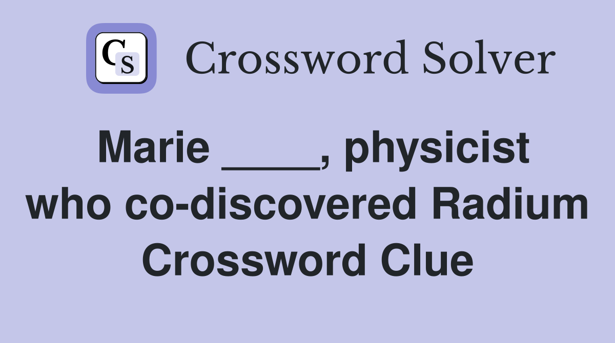 Marie physicist who co discovered Radium Crossword Clue Answers